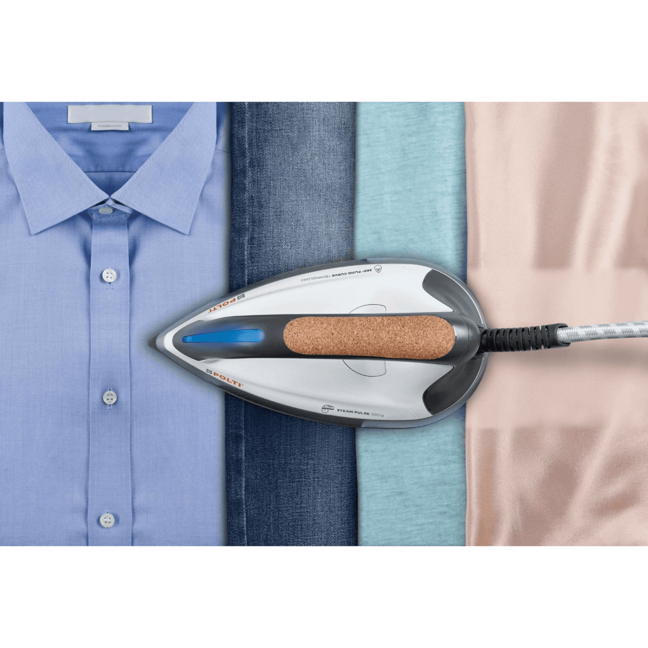 A gyors és egyszerű vasaláshoz használhatja a STEAM PULSE funkciót a gőzgomb dupla megnyomásával. A gőz automatikusan, rendszeres időközönként szabadul fel anélkül, hogy folyamatosan nyomva kellene tartani a gőzgombot, így csökkentve az ujjak és a csukló terhelését. Kiváló függőleges vasaláshoz!