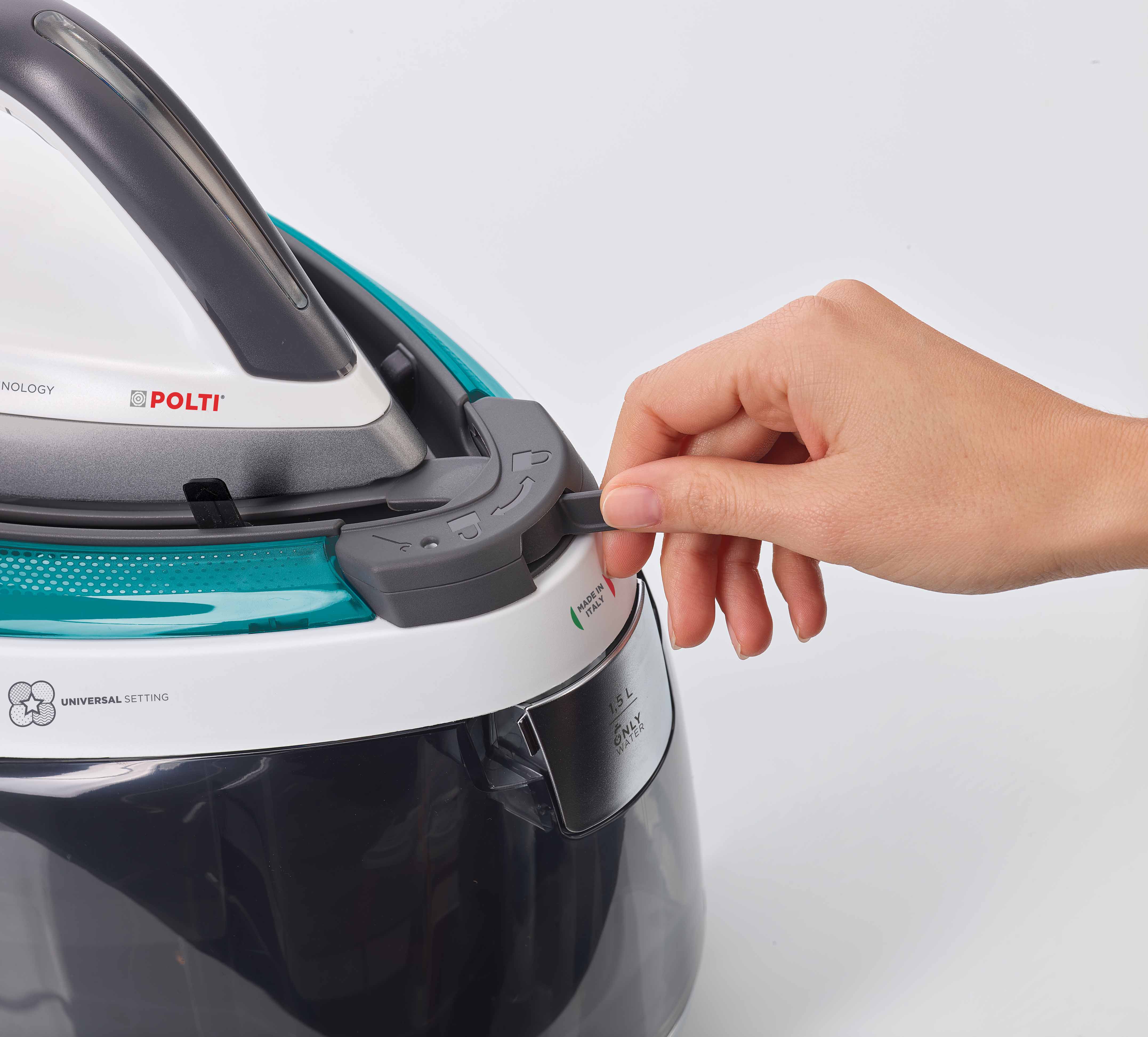 A La Vaporella a vasalás megkönnyítésére született, a különbség a részletekben rejlik: a kivehető tartály könnyen feltölthető és kiüríthető.