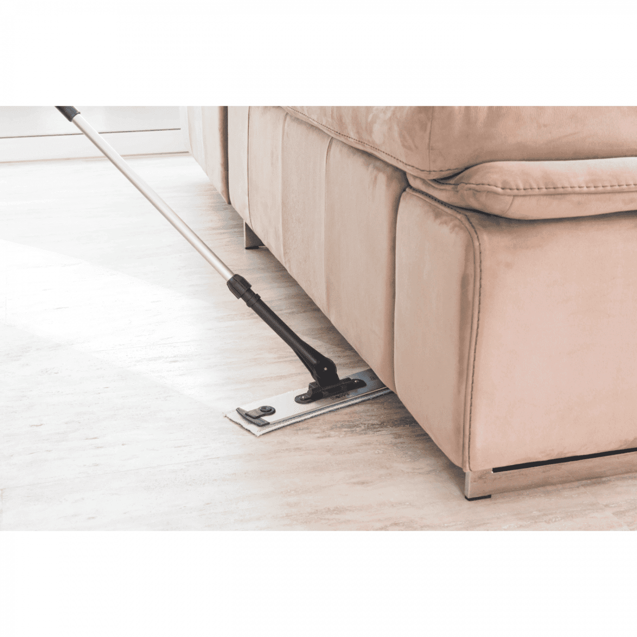 - Az eloxált alumíniumból készült vezeték nélküli felmosó könnyű mozgást és hozzáférést biztosít minden sarokhoz