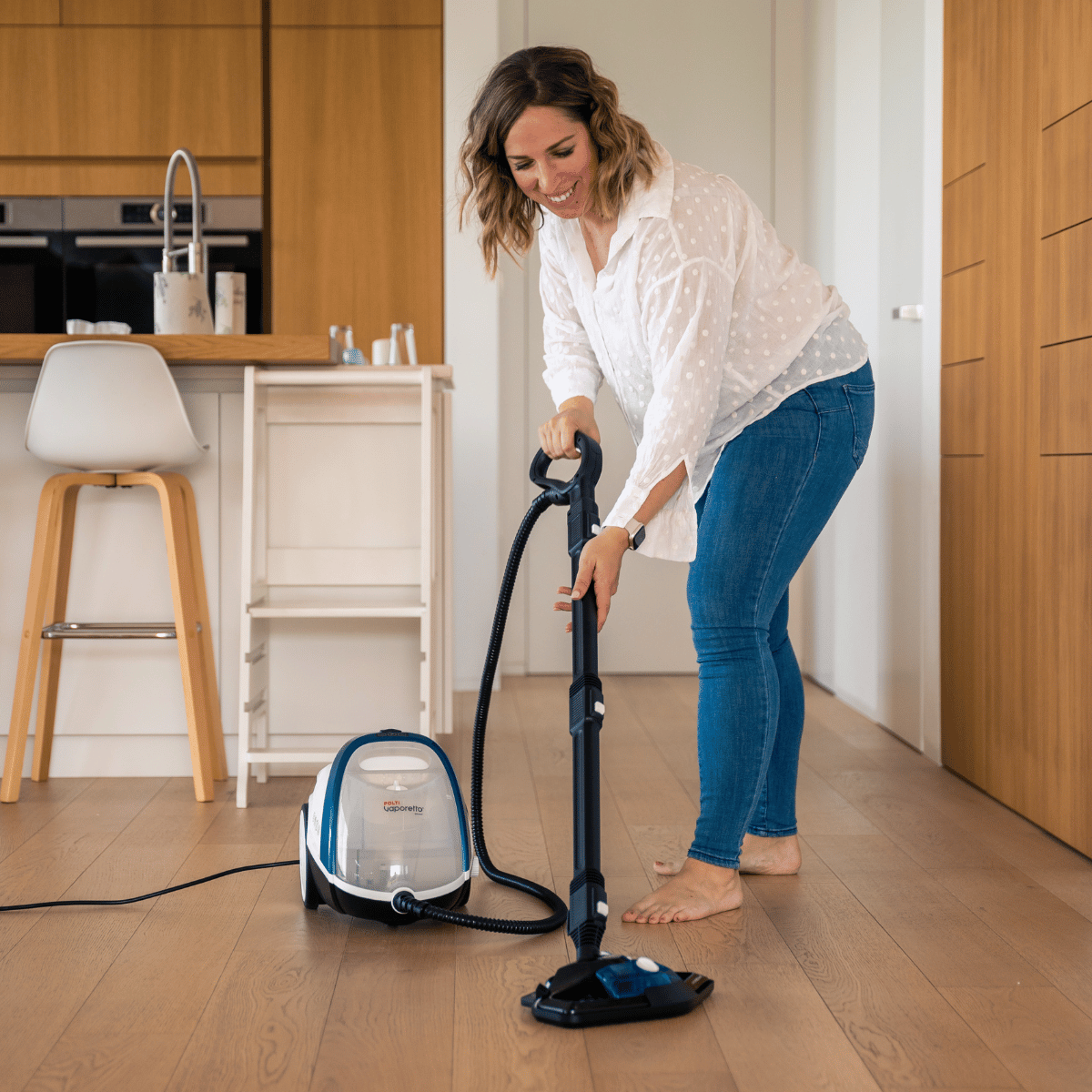 A Vaporetto Smart 100_T egy megbízható és sokoldalú gőztisztító, amelyet a mindennapi otthoni higiéniára terveztek. Korlátlan működési autonómiával és rendkívül gyors felmelegedési idővel – mindössze 2 perc alatt kész – lehetővé teszi a folyamatos tisztítást várakozás nélkül. Kivehető tartálya biztosítja a könnyű vízutántöltést, míg kompakt kialakítása kényelmes használatot biztosít bármely otthonban.