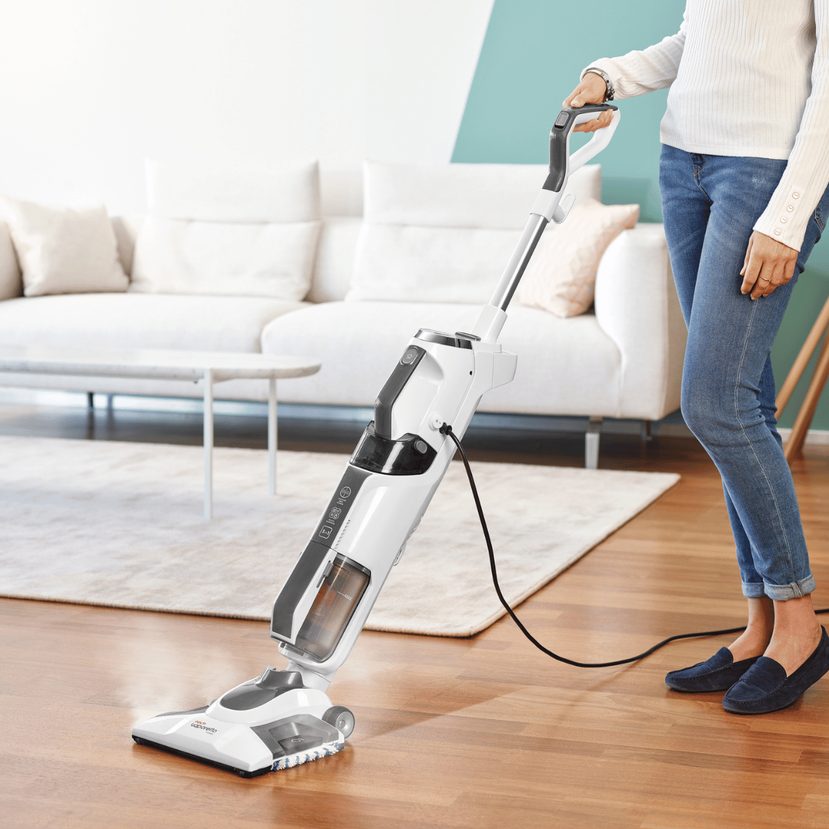 A megbízható és állandó szívóerő lehetővé teszi a fa, csempék és egyéb padlók alapos tisztítását. A hosszú kábel biztosítja a mozgás szabadságát.