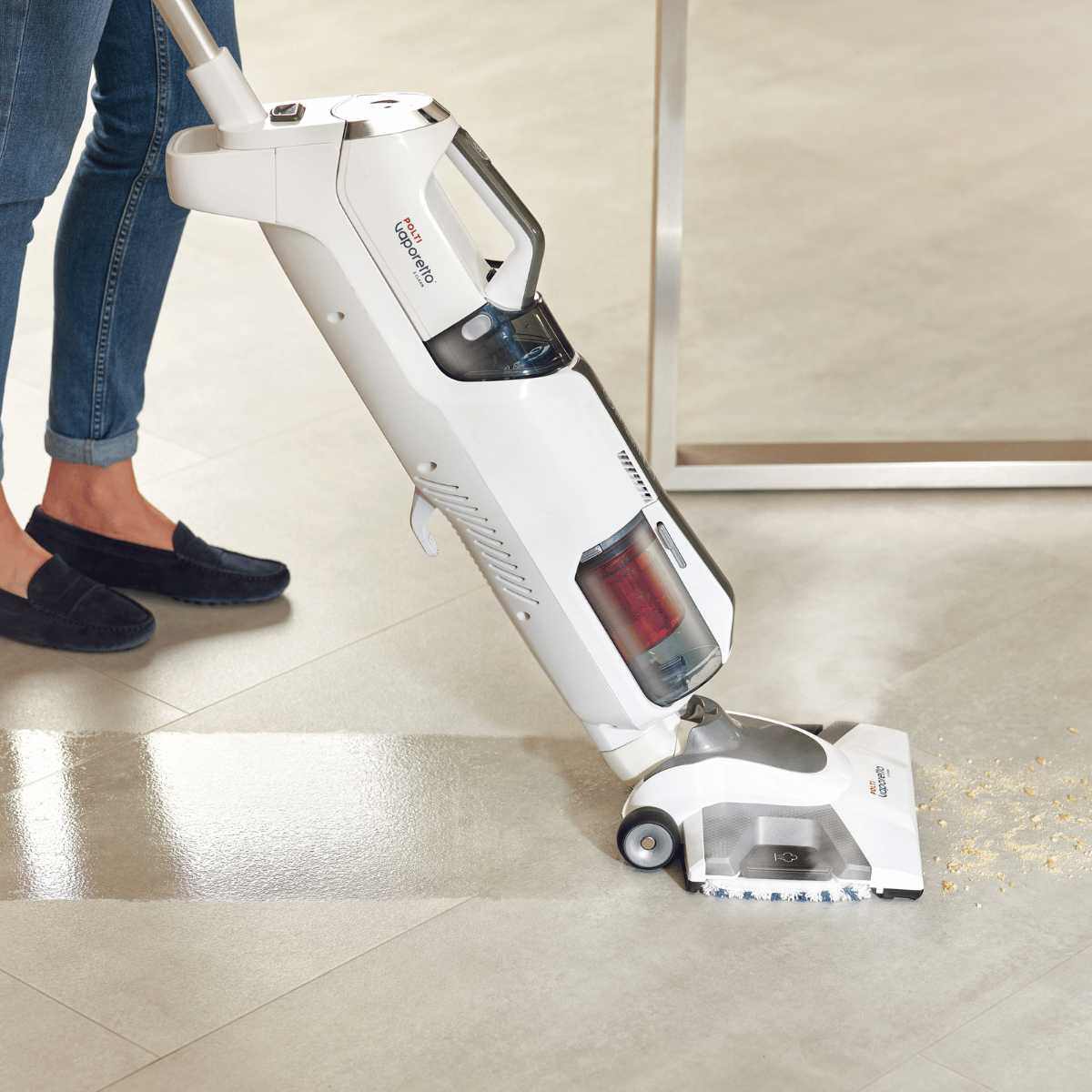 A Polti vaporetto 3 clean egy ciklon porszívó, egy gőzfelmosó és egy hordozható gőztisztító kombinációja. Egyetlen lépésben mossa, porszívózza és gőzzel fertőtleníti a felületeket – a tökéletes higiénia érdekében, kompromisszumok nélkül.