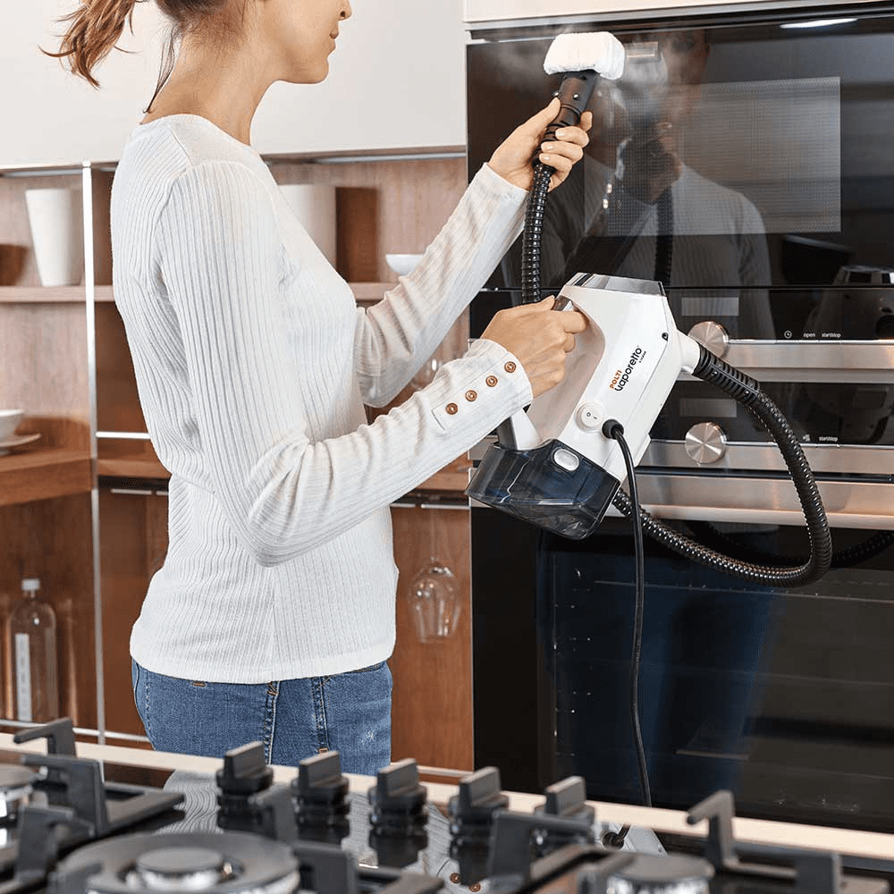 A kendő poliészter betétekkel rendelkezik, hogy még a makacs szennyeződéseket is eltávolítsa; a megfelelő tartozékhoz rögzítve a zokni felszívja és összegyűjti a gőz hője által feloldott szennyeződéseket, és a szövet szálainál tartja azokat.